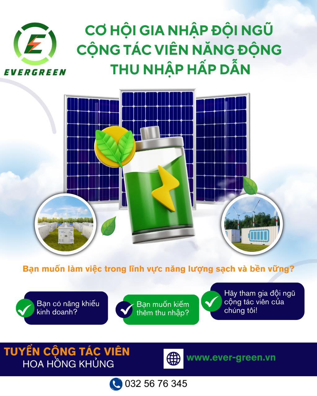Hãy gia nhập đội ngũ CỘNG TÁC VIÊN của EVERGREEN – cùng lan toả giải pháp điện mặt trời áp mái bền vững và tiết kiệm!